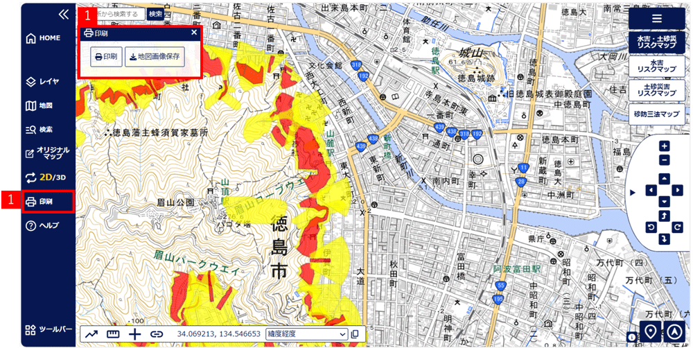 表示しているマップの印刷をすることができます。 | ▶印刷ツール |