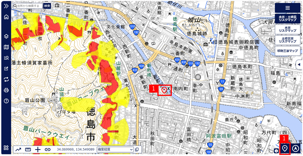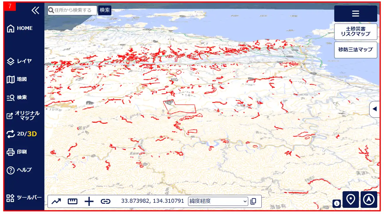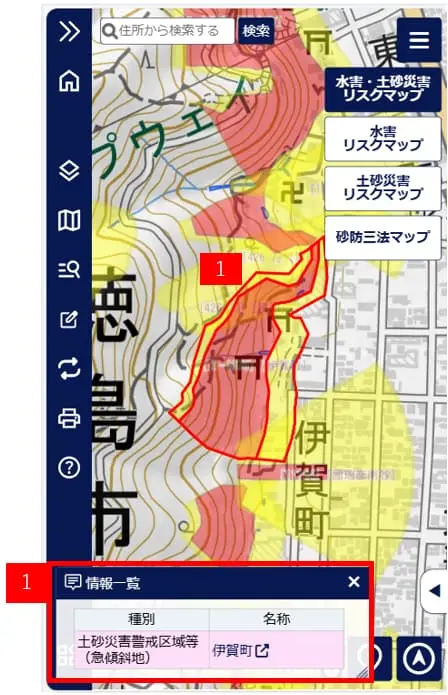 土砂災害警戒区域等の検索をすることができます。 | ▶検索ツール |